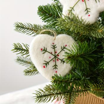 Handmade Felt Snowflake & Heart Christmas Hanging Ornament