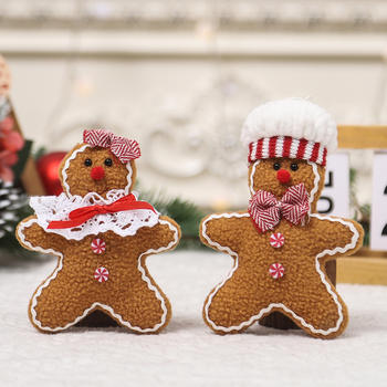 Plush Gingerbread Man Christmas Tree Ornaments Set of 2 Hanging Dolls