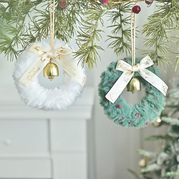Plush Christmas Wreath with Bells and Bow – Festive Door & Window Decoration