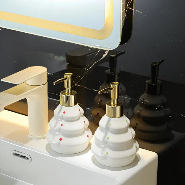 Celebrate the holiday season in style with this Christmas Tree Ceramic Soap Dispenser – a delightful blend of function and festive flair. Crafted with care and designed to impress, this elegant dispenser adds a warm, cheerful touch to your bathroom or kitchen. Whether you use it for hand lotion, shower gel, or shampoo, its charming Christmas tree shape instantly brightens your space and spreads the joy of the season every time you wash up.