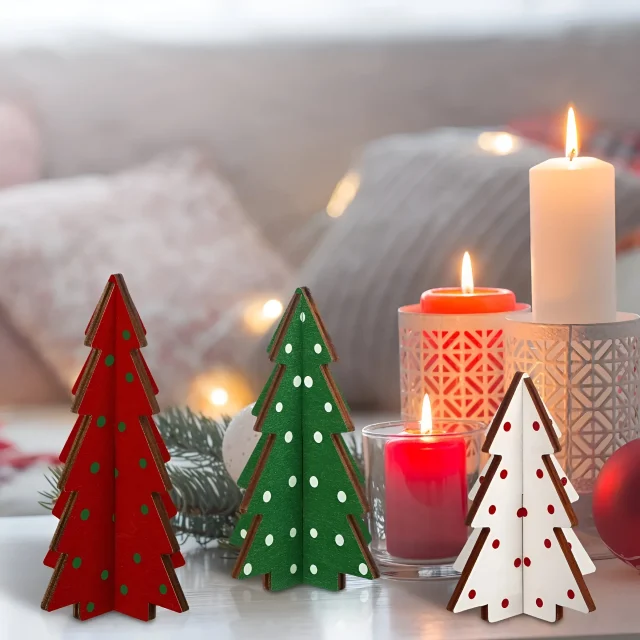 This tree set is ideal for the entire holiday season, from early December through New Year’s. Use it as a centerpiece for your dining table, an accent on your office desk, or as part of a festive tiered tray display. It’s also wonderful for holiday parties, winter photo setups, and cozy corner decorations. Whether at home or in a workspace, these trees bring a cheerful Christmas atmosphere wherever they’re placed.