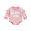 Autumn Baby Girl Striped Ruffle Jumpsuit with Embroidered Lettering