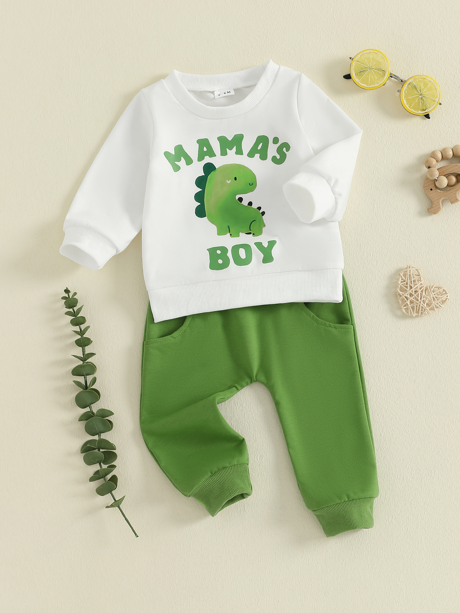 • 2-Piece Set: Includes a dinosaur letter print pullover and matching solid pants