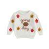 This sweater isn’t just about keeping warm—it’s about making memories. It’s perfect for fall family outings, game days, pumpkin patch visits, and cozy afternoons at home. The unique embroidered pattern makes it stand out from everyday basics, while the neutral white and soft pink colors pair effortlessly with leggings, jeans, or skirts. It’s a stylish piece that lets her move freely and stay comfortable while looking absolutely adorable.