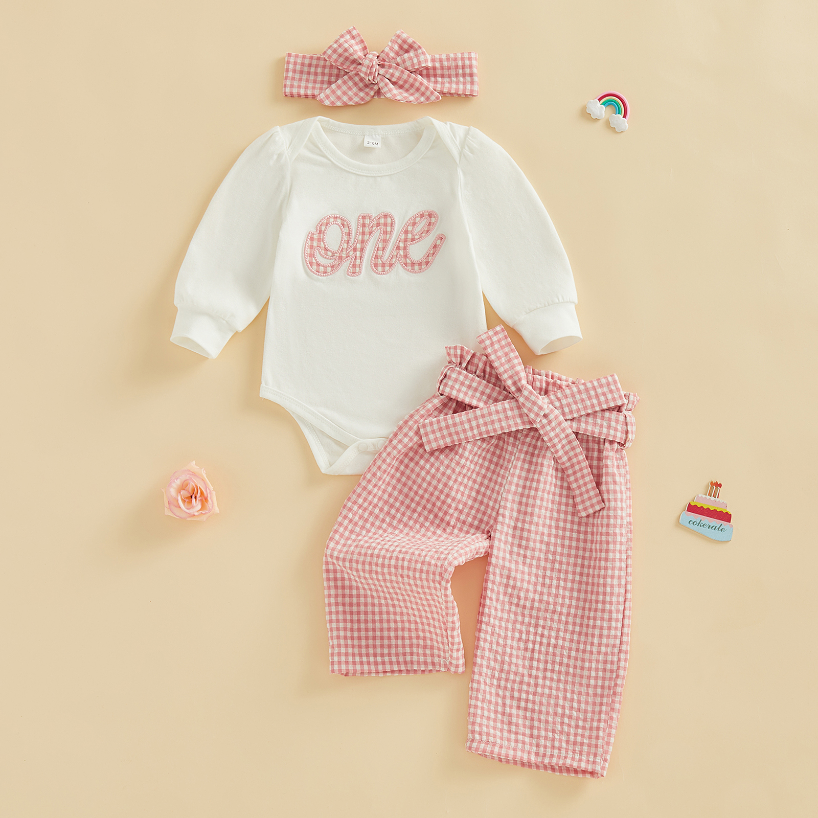 Don’t miss out on this adorable birthday outfit that’s as comfortable as it is stylish. Make your baby’s day even more special with this 3-piece set featuring a romper, pants, and headband. Order now and make her first birthday or any occasion extra memorable!