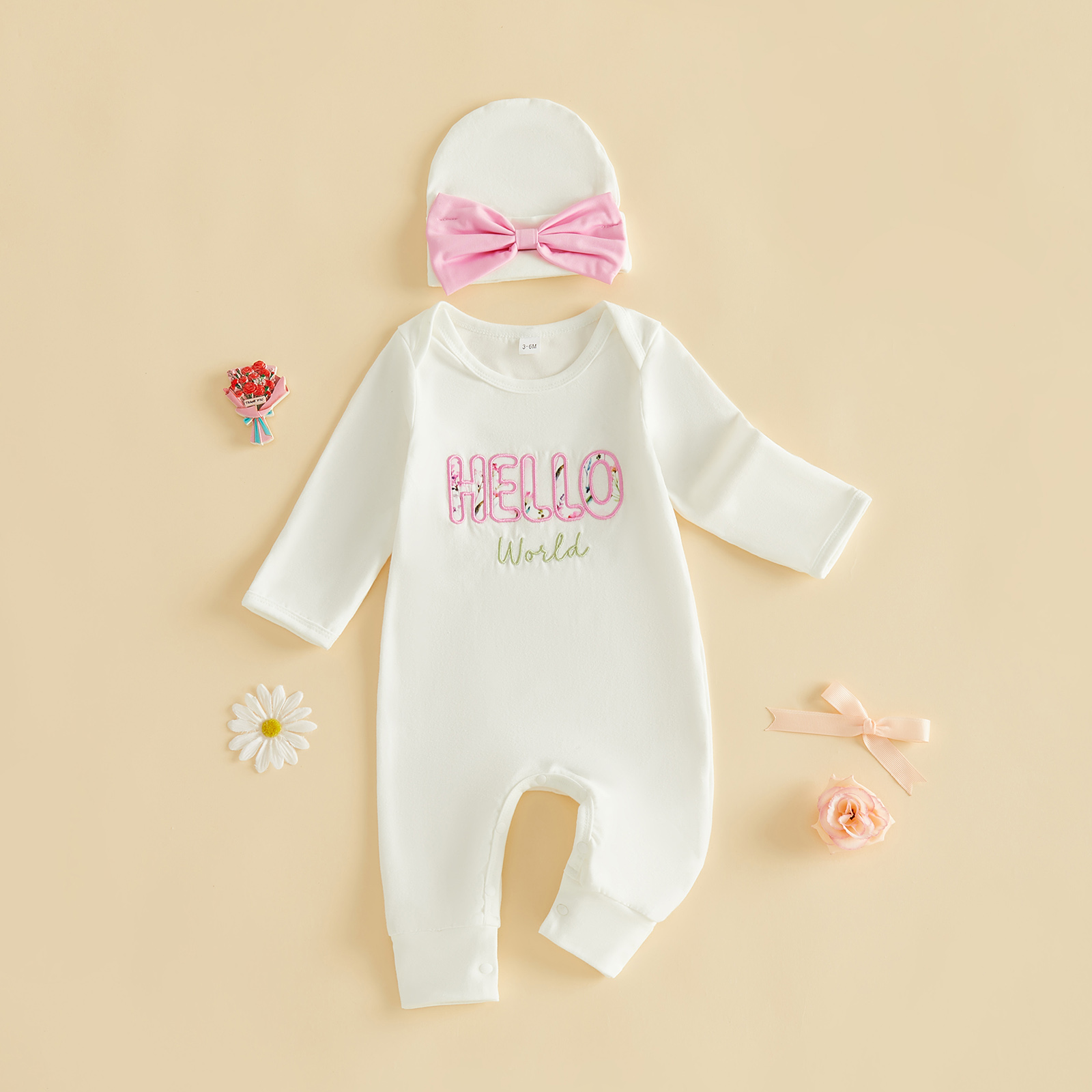 Welcome your little one in style with this adorable Spring Newborn Baby Girl Outfit. Perfect for those first special moments, this cute set features a soft long-sleeve romper with charming letter embroidery and a matching bow hat, designed to keep your baby both comfortable and stylish. Whether it’s a family gathering, a day out, or simply lounging at home, this outfit is the ideal choice for your newborn or infant.