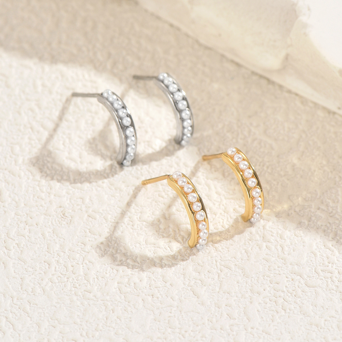 These stud earrings feature smooth imitation pearls set on a warm golden finish that complements all skin tones. Their lightweight build and push-back closure keep them secure and comfortable throughout the day, making them perfect for women who prefer jewelry that looks stunning without feeling heavy. The geometric-inspired design adds a modern twist while staying subtle enough for minimalist fashion lovers.
