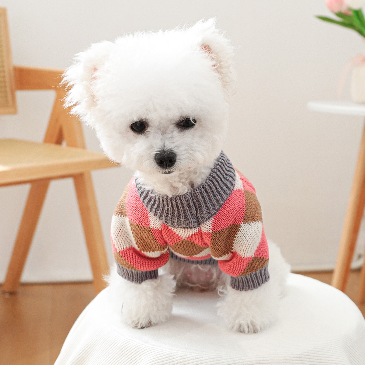 Give your furry friend the warmth and comfort they deserve with this Classic Plaid Winter Dog Sweater. Designed for small and medium-sized dogs, this adorable two-legged pullover is crafted from soft, high-quality wool to keep your pet snug during chilly days. Its charming plaid design in a powder coffee diamond pattern adds a touch of timeless style, making every walk or cuddle session picture-perfect.