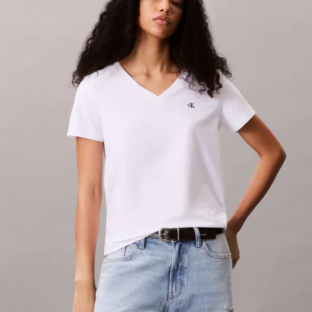 Whether you’re dressing for a relaxed day out or adding layers for a cozy evening, the Calvin Klein Jeans Women’s Classic White V-Neck T-Shirt is your go-to piece for effortless sophistication. Add it to your collection today and experience the perfect blend of comfort, style, and confidence — because true elegance begins with simplicity.