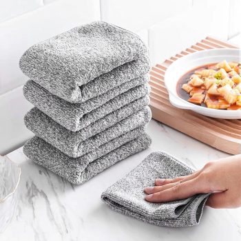 Gray Bamboo Charcoal Microfiber Dishcloths – Super Absorbent & Anti-Grease Cleaning Rags (5/10 Pack)