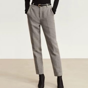 Minimalist Wool Blend Straight Pants for Women – Winter Office Casual