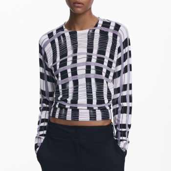 Desigual Women’s Black Checked Knitwear – Long Sleeve Round Neck Sweater