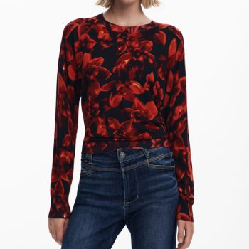 Desigual Women’s Floral Knitwear – Black Long Sleeve Round Neck Top