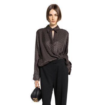 Fendi Brown Silk FF Jacquard Long-Sleeved Shirt with Crossover Silhouette