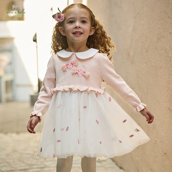 Girls Cotton Sweater Dress with Mesh Skirt – Long Sleeve Spring Style