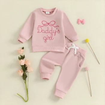 Baby Girl 2PCS Long Sleeve Bow Embroidered Top and Drawstring Pants Set