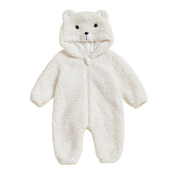 Cozy Autumn Baby Boys Plush Hooded Bear Jumpsuit