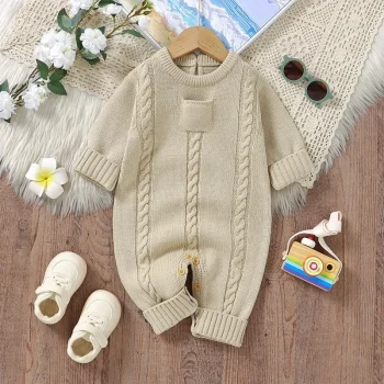 Soft Knit Cable Romper for Babies 0–2Y – Cozy Unisex Jumpsuit
