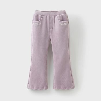 Girls Bootcut Velvet Pants Loose Fit Elastic Waist Formal Trousers