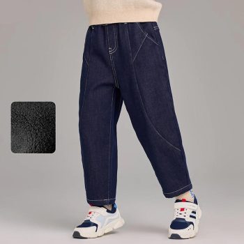 Warm Boys Straight Velvet Lined Jeans Pants 7-13 Years Casual Trousers