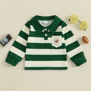 Toddler Boy Fall Stripe Pullover with Football Embroidery Pocket