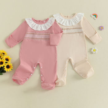 Newborn Baby Girl Ruffled Romper with Contrast Long Sleeves & Footed Jumpsuit