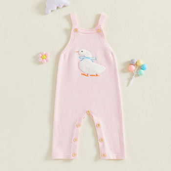 Baby Girl Knitted Romper Sleeveless Jumpsuit with Duck Embroidery
