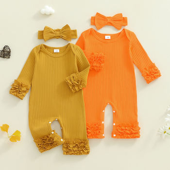 Cute Baby Girl Long Sleeve Jumpsuit with Bow Headband