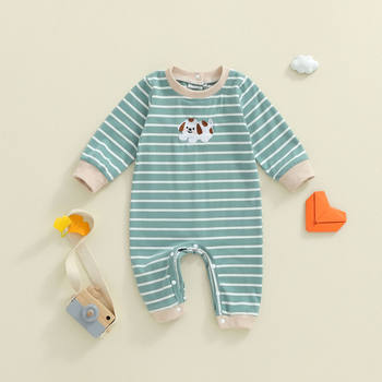 Baby Boy Fall Stripe Romper with Dog Embroidery