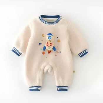 Baby Romper with Cartoon Rocket | Fleece Padded Jumpsuit 3-24M