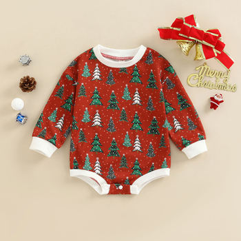 Infant Christmas Tree Romper Long Sleeve Cotton Jumpsuit for Baby Boys Girls