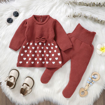 Cozy Knit Baby Girl Sweater Dress & Pants Set – Warm Outfit 0-9M