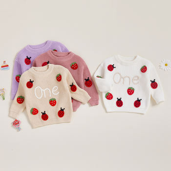 Baby Girl Strawberry Embroidered Knit Sweater – Long Sleeve Birthday Top