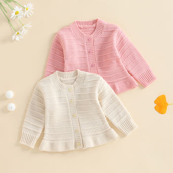 Baby Girl Knitted Cardigan Long Sleeve Button-Up Sweater – Cozy Fall & Winter Outfit