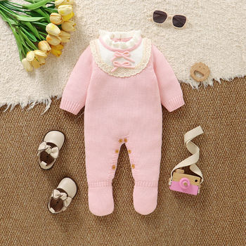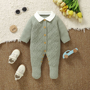 Cozy Knit Baby Romper with Long Sleeves & Footed Design for Winter