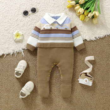 Autumn Knit Baby Romper with Cute Bear Design, 0–9 Months