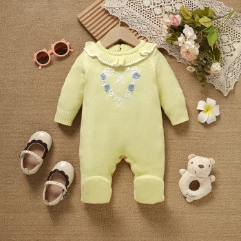 Infant Knit Floral Ruffle Romper – Long Sleeve Baby Girl Playsuit