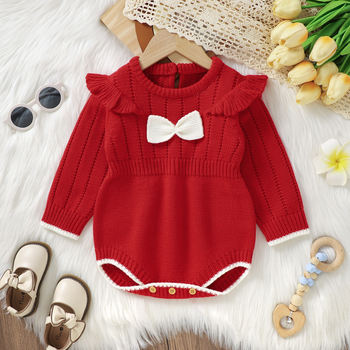 Cozy Knit Long-Sleeve Baby Bodysuit Jumpsuit for Girls (0-18M)