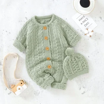 Cozy Knit Baby Romper Set with Hat – Long Sleeve Winter Outfit 0-18M
