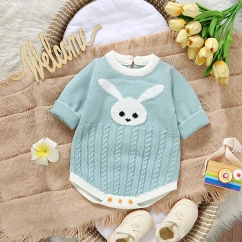 Cozy Knit Newborn Bunny Romper – Long Sleeve Unisex Baby Bodysuit