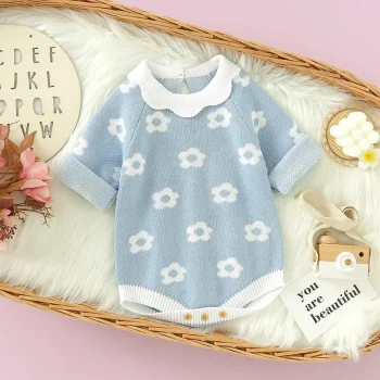 Cotton Knitted Patchwork Baby Girl Long-Sleeve Romper for 0–18M