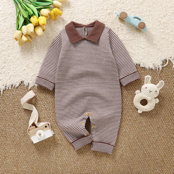 Striped Knit Baby Romper Jumpsuit with Long Sleeves for Newborns