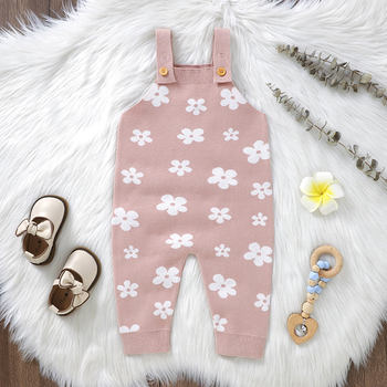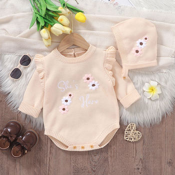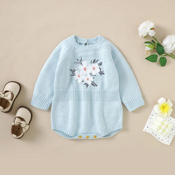 Knitted Floral Baby Bodysuit Long Sleeve Jumpsuit for Newborns