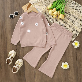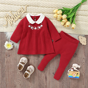 Knitted Baby Girl Outfit Set with Sweater, Pants & Foot Wraps