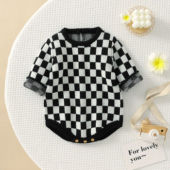 Plaid Knit Baby Bodysuit Long Sleeve Unisex Romper
