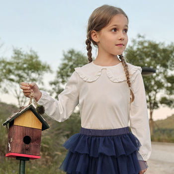 Girls Cute Solid Long Sleeve Cotton Top for Spring & Fall