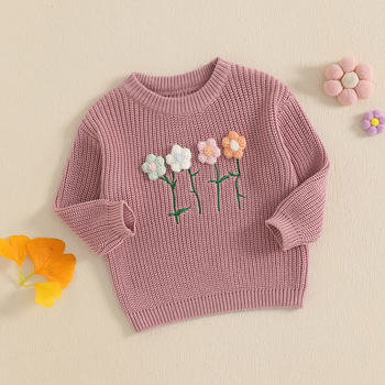 Girls Long Sleeve Crew Neck Flower Winter Sweater – Warm Casual Clothing