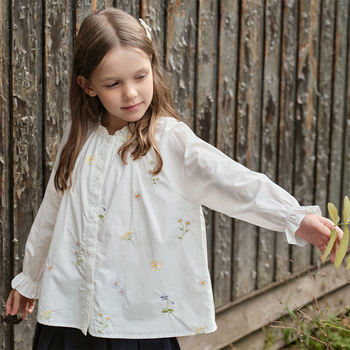 Girls White Floral Long Sleeve Cotton Shirt for Spring & Autumn