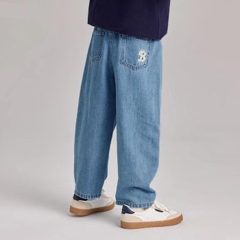 Kids Boys Straight Fit Denim Pants with Elastic Waist for Fall & Spring