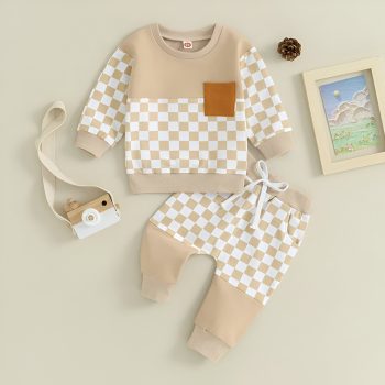 Baby Boy Plaid Sweatshirt and Pants 2-Piece Fall Outfit Set